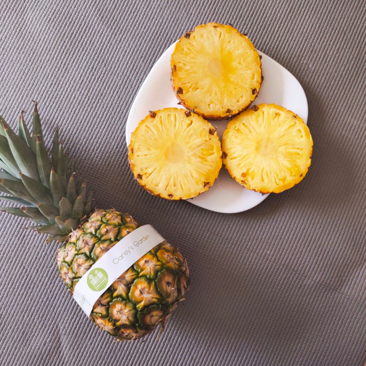 Feature : Vỏ xanh khi sống, vỏ vàng khi chín. Thịt quả màu vàng, nhiều nước, có mùi thơm khi chín. Quả to, mắt dứa to